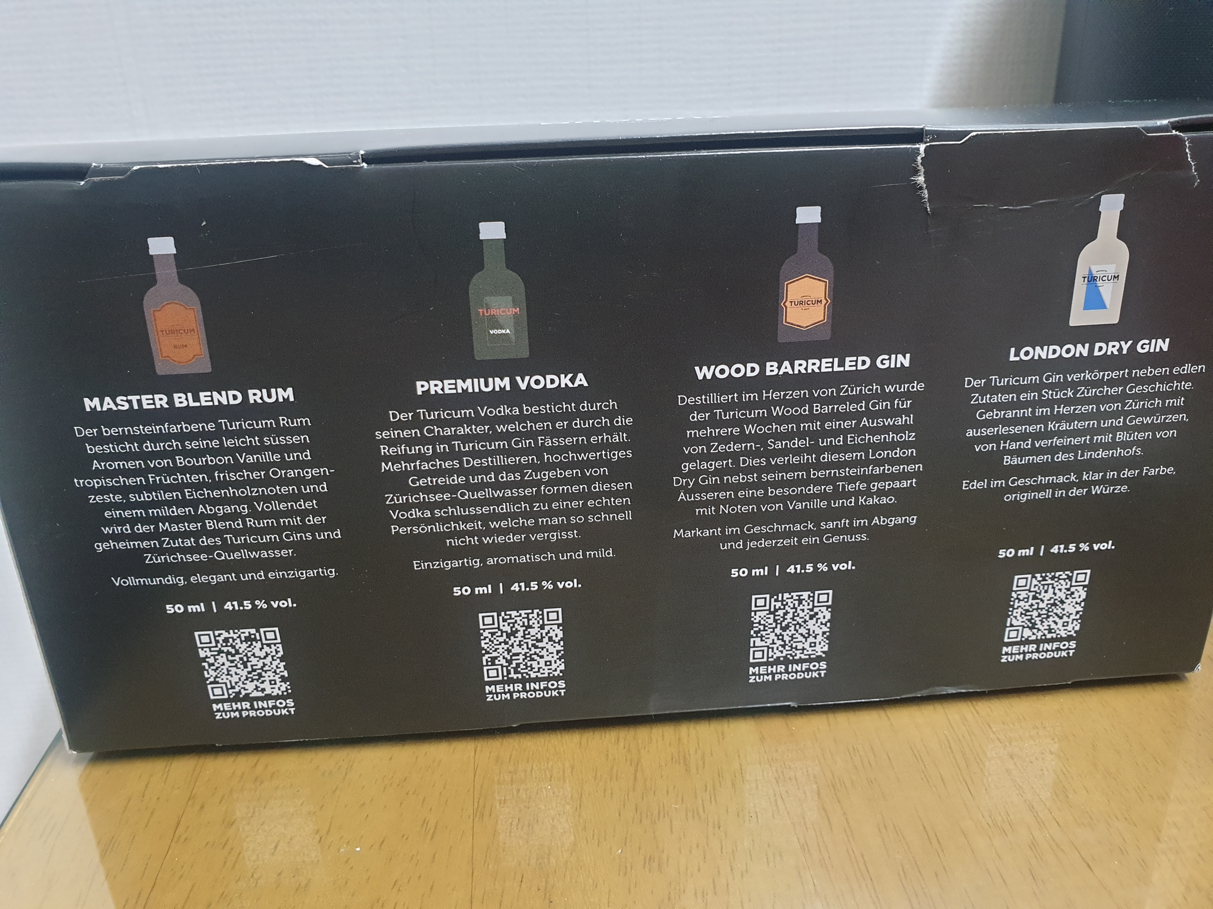 진, 보드카, 럼을 4종 미니어처에 담은 스위스 발효주입니다~